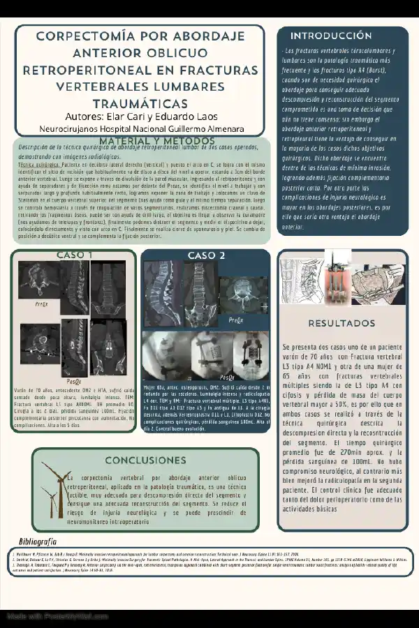 REPORTE DE CASO: CORPECTOMÍA POR ABORDAJE ANTERIOR OBLICUO RETROPERITONEAL EN FRACTURAS VERTEBRALES LUMBARES TRAUMÁTICAS