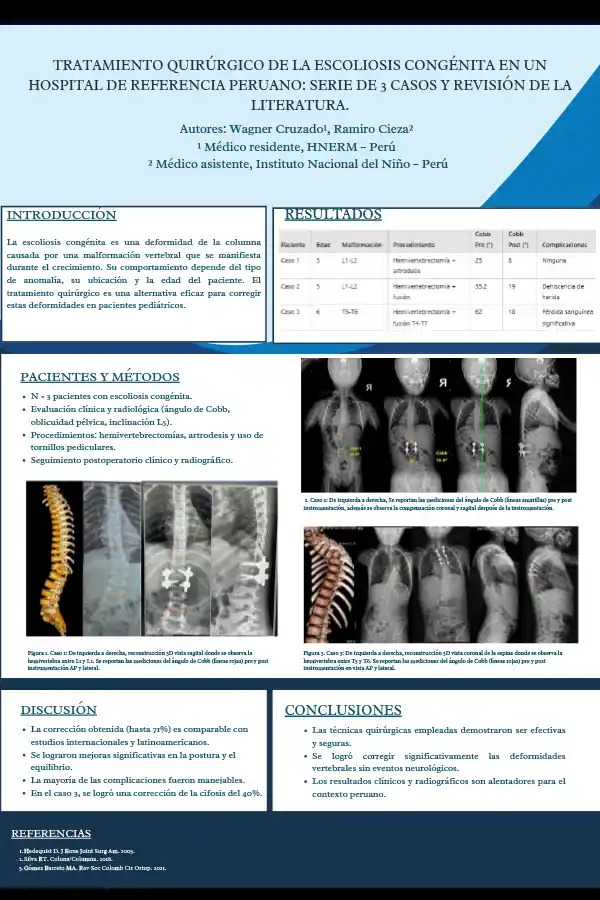 TRATAMIENTO QUIRÚRGICO DE LA ESCOLIOSIS CONGÉNITA EN UNHOSPITAL DE REFERENCIA PERUANO: SERIE DE 3 CASOS Y REVISIÓN DE LALITERATURA.